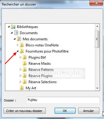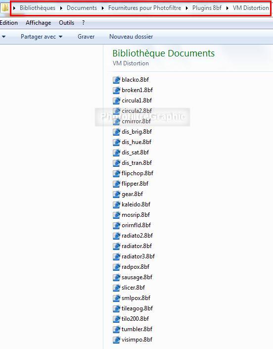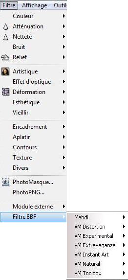 Fournitures pour PhotoFiltre39.Double-clic sur Plugins 8BF >