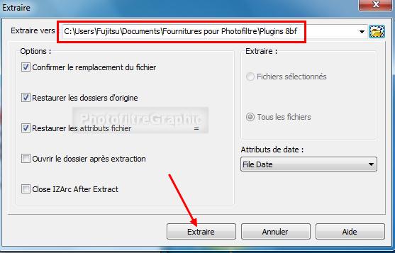 13.Dézippez ce fichier dans le dossier Plugins 8BF qui est dans Fournitures pour PhotoFiltre