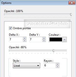 82. Menu Filtre > Esthétique > Contour 3D. Couleur 1=Blanc. Couleur 2=Noir. Epaisseur = 3. Opacité = 80. Haut/Gauche