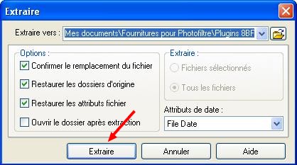 17.Dans la fenêtre qui s'ouvre, cliquez sur Extraire