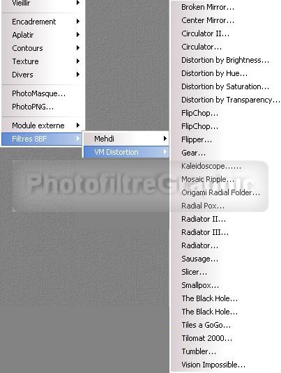 33.Dans le Menu Filtre > Filtres 8BF vous avez VM Distorsion avec Mehdi