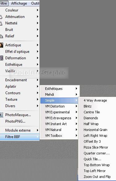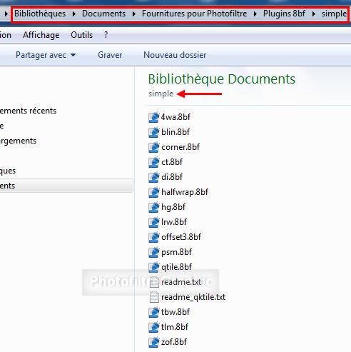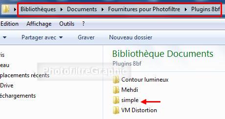 Fournitures pour PhotoFiltre10.Double-clic sur Plugins 8BF