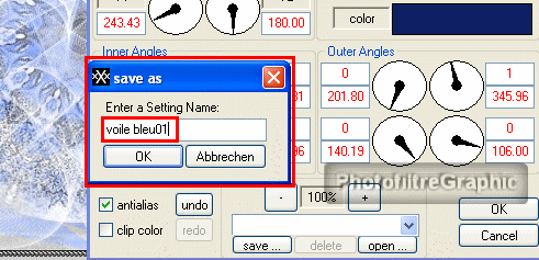 39.Ecrivez un nom pour reconnaître ce réglage (voile bleu01).... OK