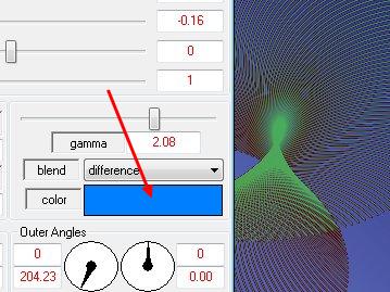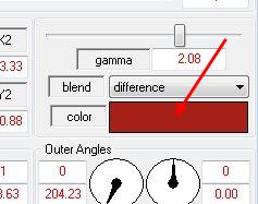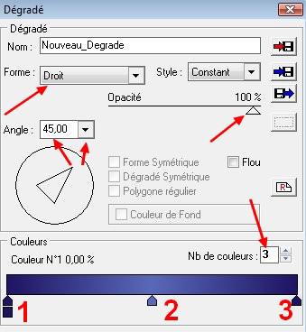 56.Forme = droit. Nombre de couleurs = 3. Angle = 45,00 (cliquez sur la pointe pour le sélectionner)