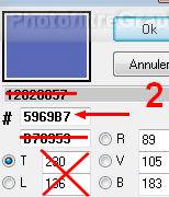 53.Mettez en couleur d'arrière-plan le bleu clair R=89 V=105 B=183