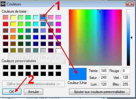 72.Dans la fenêtre des Couleurs, cliquez sur le bleu-clair puis sur OK
