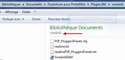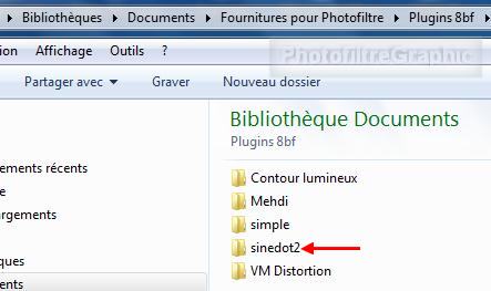 Fournitures pour PhotoFiltre6d.Double-clic sur Plugins 8BF