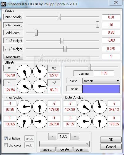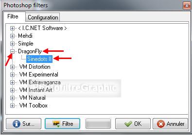 63a. Menu fitre > Module externe > 8bfFilters > DragonFly > Sinedot II > Filtre en bas