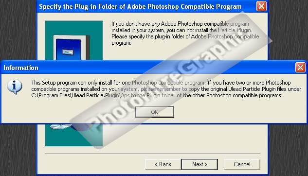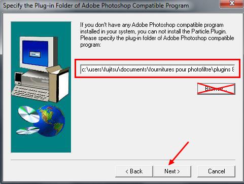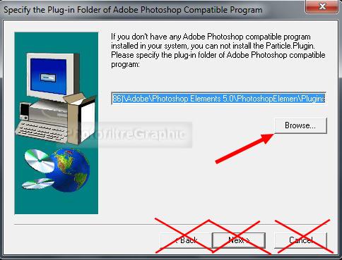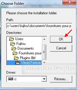 27. Il veut aussi s'installer dans Photoshop mais en cliquant sur Browse, vous allez le conduire dans le dossier Ulead Particle créé ligne 3...