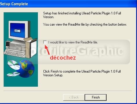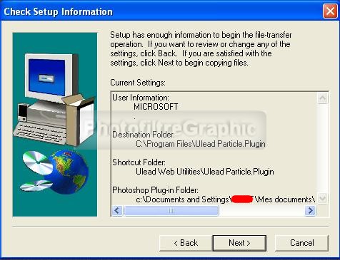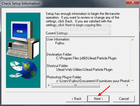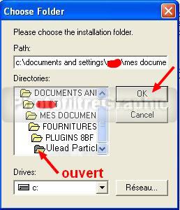 21. REMARQUE Ce plugin va s'installer à 2 endroits: 1. Dans Program files ou Program files(86) ou Programmes 2. Dans le dossier Ulead Particle que vous avez créé à la ligne 3 |