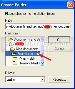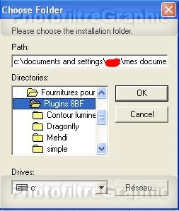 11.Avec XP 12.Clic sur Démarrer > clic sur Mes Documents 13.Double-clic sur Fournitures pour PhotoFiltre 14.Double-clic sur Plugins 8BF 15.Clic à gauche sur Créer un nouveau dossier 16.A la place de