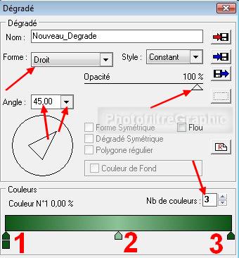 80.Forme = Droit. Nombre de couleurs = 3. Angle = 45 , voir mon tuto