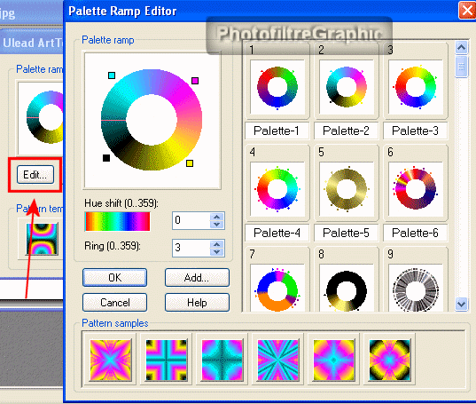 40.Vous pouvez aussi cliquer sur Edit qui ouvre Palette Ramp Editor
