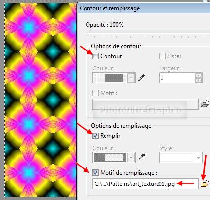 53. Clic sur le petit dossier jaune pour sélectionner le motif art-texture enregistré