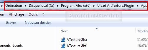 32c. Double-clic sur Ulead Art Texture et vous voyez 2 fichiers A Texture avec des extensions différentes (8ba et 8 bf)