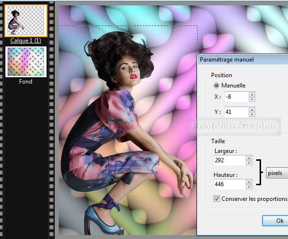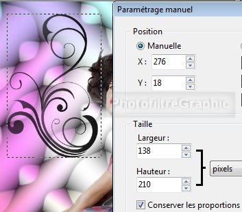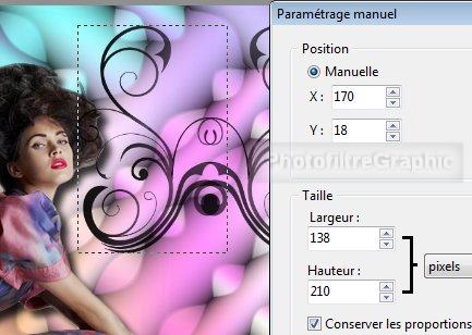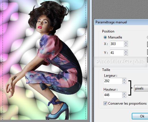 45.Position manuelle: X= 303 Y= 41 Taille sans changement ( 292 et 446)