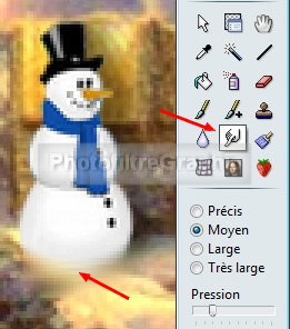 10. Clic sur le tube du bonhomme de neige. Copier-coller sur le calque 1
