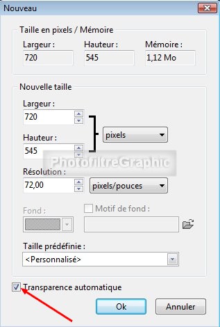 37.Ouvrez donc un Nouveau document Transparent de 720 x 545. Enregistrez-le au format pfi