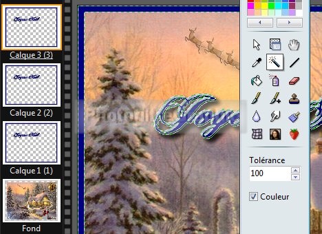 51. Avec la baguette magique Tolérance 100 et Couleur coché, sélectionnez le bleu du calque 3