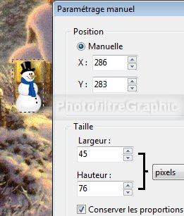 12.Position manuelle: X=286 Y=283 Taille: Largeur=45 Hauteur =76
