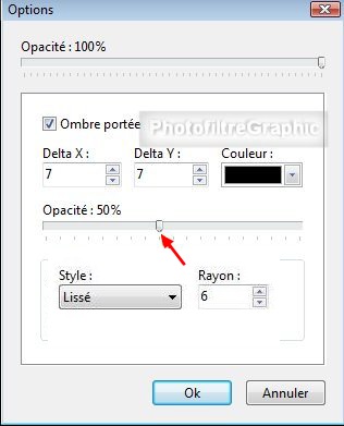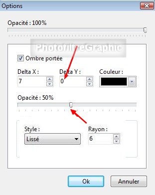 8.Double-clic sur la vignette du calque. Cochez Ombre portée. Curseur du bas sur 50%
