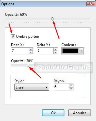 22. Curseur Opacité du haut sur 60% et celui du bas sur 30%