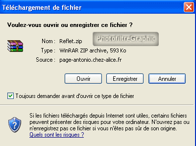 1.Créez un sous-dossier Reflet dans Fournitures pour Photofiltre dans Mes documents