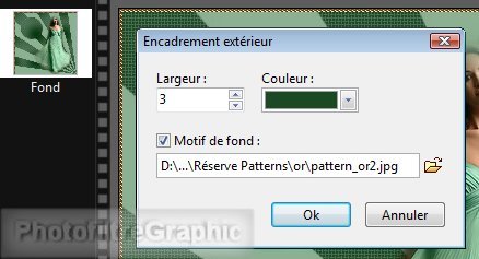 35.Refaites l'encadrement: Menu Image > Encadrement extérieur Largeur = 3. Motif de fond=Pattern_or2