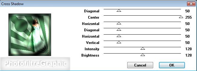 33.Menu Filtre > Filtre 8BF > Graphics Plus > Cross Shadow avec ces réglages: 50/255/50/50/50/50/128/128