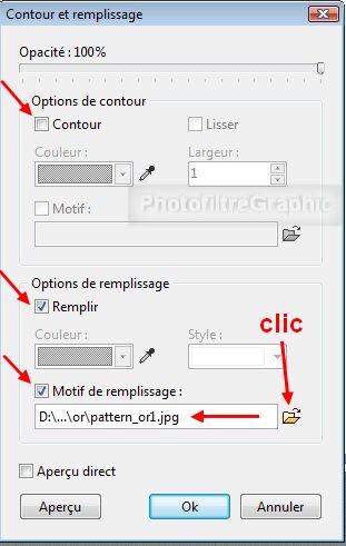 42.Décochez Contour. Cochez Remplir et Motif de remplissage