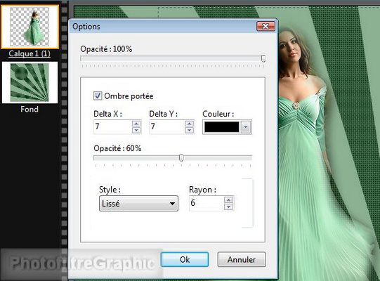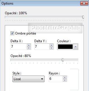 27.Cochez Ombre portée. 7/7. Noir. Curseur Opacité du bas= 60 %