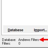 5. Cliquez sur Database puis sur Andrews Filters (créé ici ligne 11)