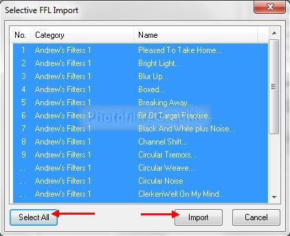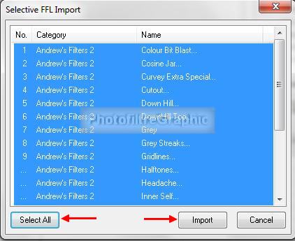 12. Cliquez sur Select All pour les sélectionner puis clic sur Import