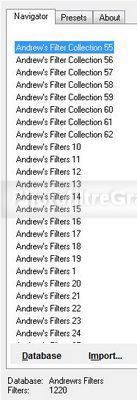 1. Andrews contient 62 fitres qui contiennent chacun une vingtaine d'effets