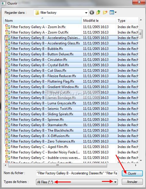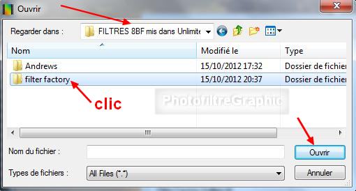 7. Cliquez sur le dossier filter factory puis clic sur Ouvrir
