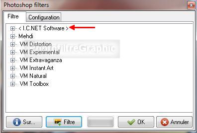 34.Dans le Menu Filtre > Module externe > 8bf Filters, il apparaît sous le nom < I.C.NET Software >