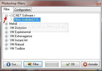 50. Menu Filtre > Module externe > 8bf Filters > < I.C.NET Software > FiltersUnlimited 2.0