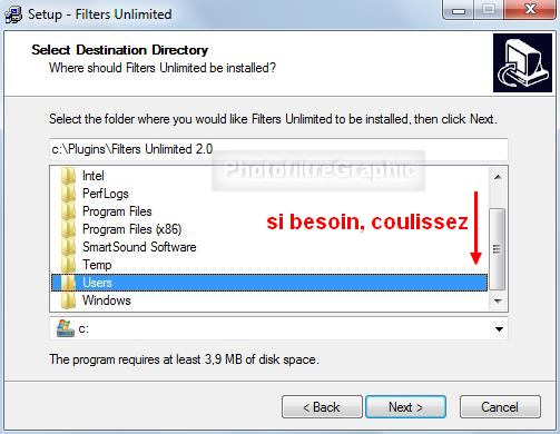 20.C'est ici l'endroit crucial où il faut bien indiquer le chemin pour que l'installation se fasse au bon endroit 21.Ne cliquez surtout pas sur Next