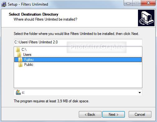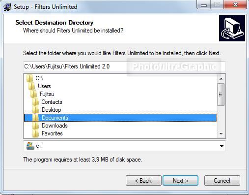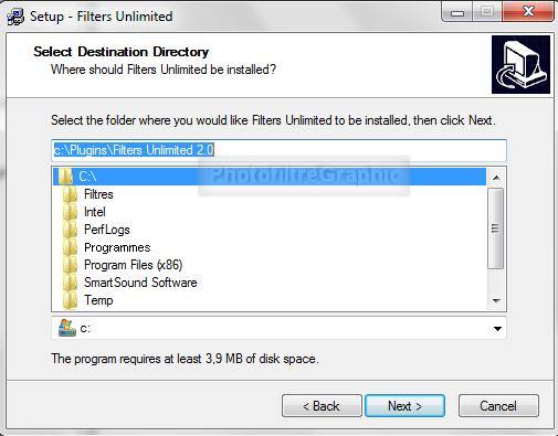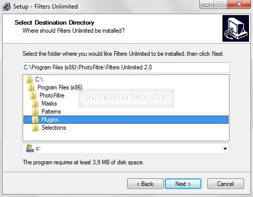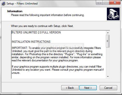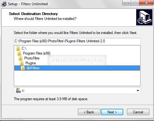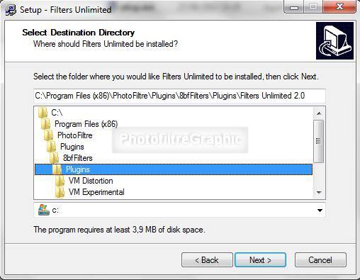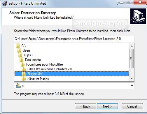 Le Plugin.8BF Filters Unlimited 2.0 qui nécessite une installation