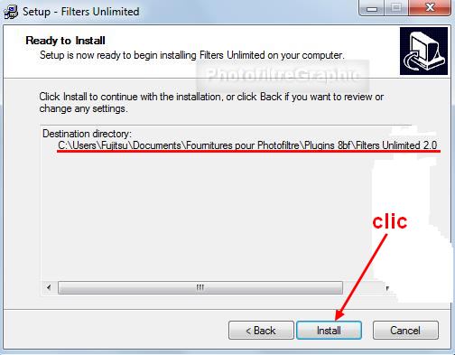 32n. Le chemin pour l'installation s'affiche. Clic sur Install