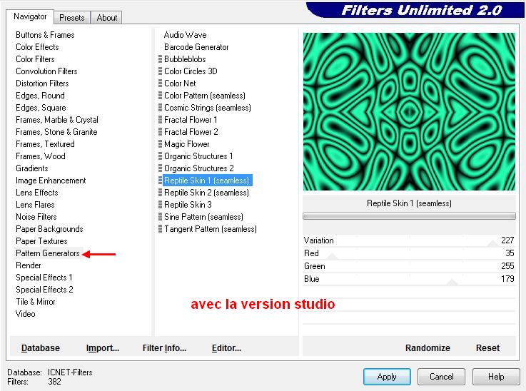 46. Menu Filtre > Filtre 8BF > < I.C.NET Software > FiltersUnlimited 2.0