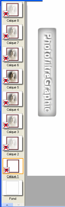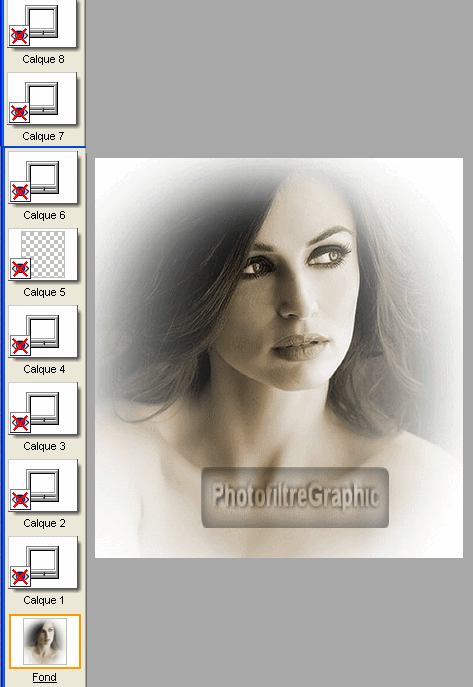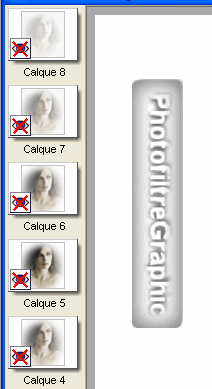 3.Vous obtenez un fond avec l'image et une série de 8 calques plus ou moins opaques dont le 5 transparent