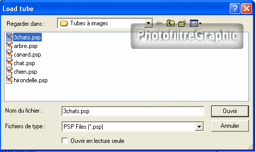 7.Sélectionnez le fichier 3chats.psp > Ouvrir