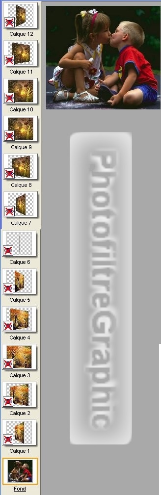 38.Dupliquez 12 fois ce calque: Clic droit sur la vignette du calque du dessus > Dupliquer