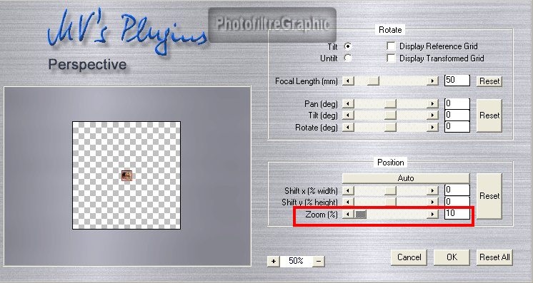 13.Menu Filtre > Filtres 8 BF > MV's Plugins > Perspective transformations