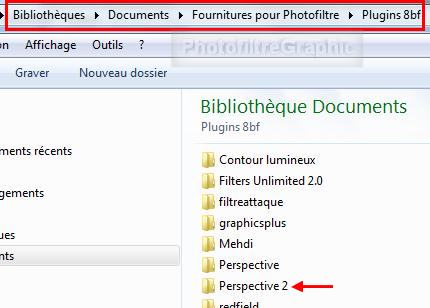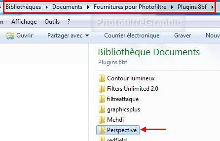 10. Créez un sous-dossier Perspective dans le dossier Plugins 8BF qui est dans les Fournitures pour PhotoFiltre