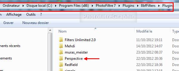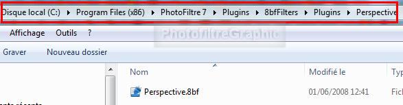 1ière solution: 12.Dans Plugins qui est dans l'installation de PhotoFiltre (ici, ligne 18) 13. Copier-coller le dossier Perspective de la ligne 11 dans le dossier Plugins de 8bfFilters ---------------------- 14.VERIFICATION de ce qui s'est chargé 15a.