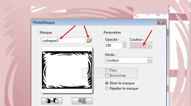 13.Appliquez le masque cadrepao3 avec Photomasque dans le menu Filtre. Couleur de l'arrière-plan