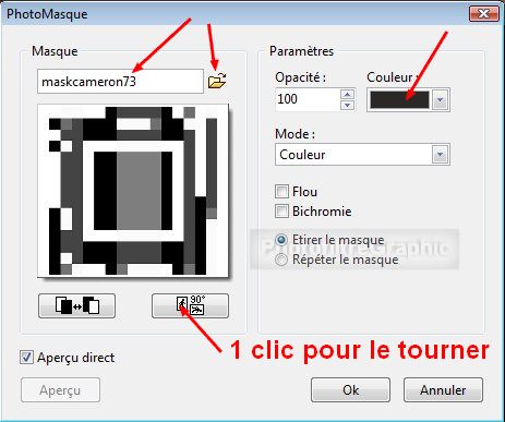 14.Avec Photomasque, appliquez le masque maskcameronF73 en le pivotant et cette couleur foncée
