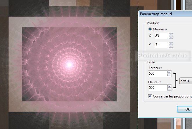 18.Position manuelle: X=83 Y=31 Taille: Largeur=500 Hauteur =500